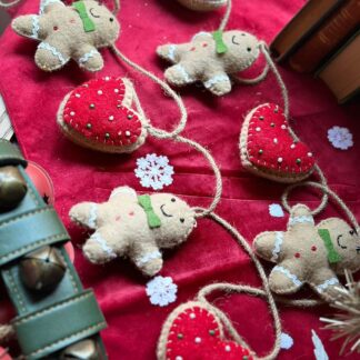 Guirnalda de lana galleta de jengibre y bolas multicolor