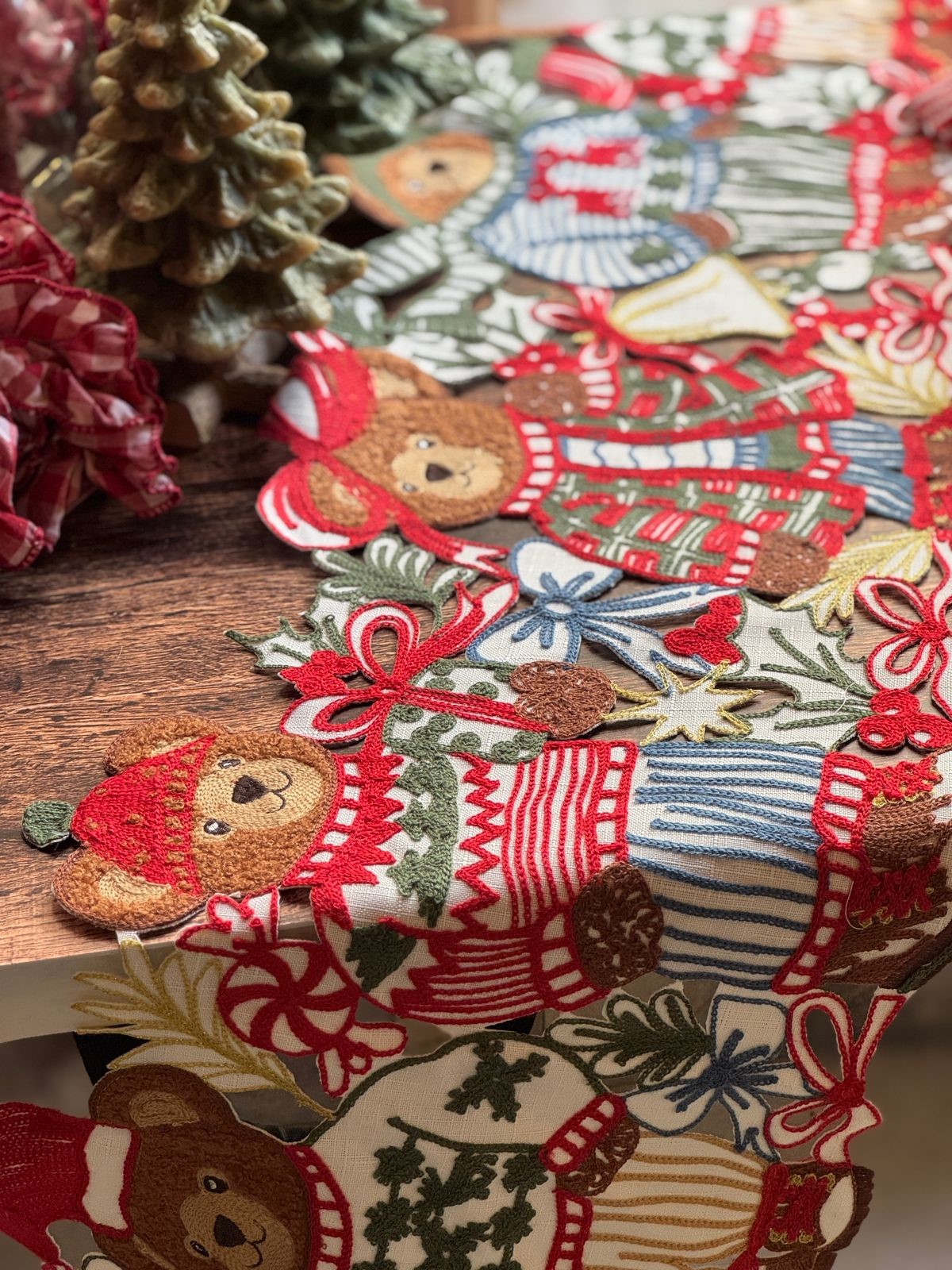 Camino de mesa con teddy bear recortados y en diferentes posiciones.