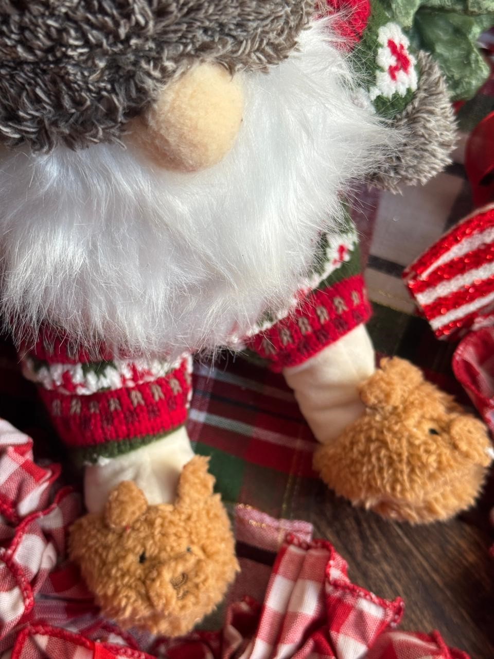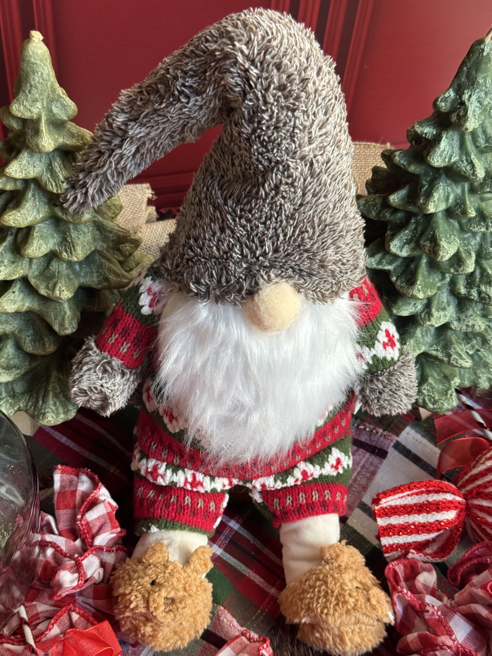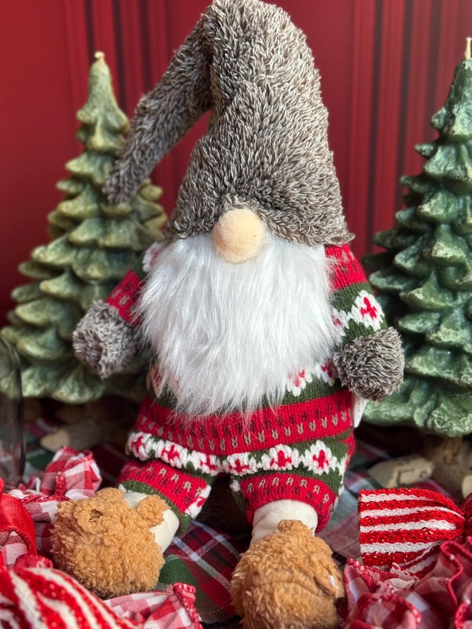 Muñeco gnomo con pijama y pantuflas de ositos.