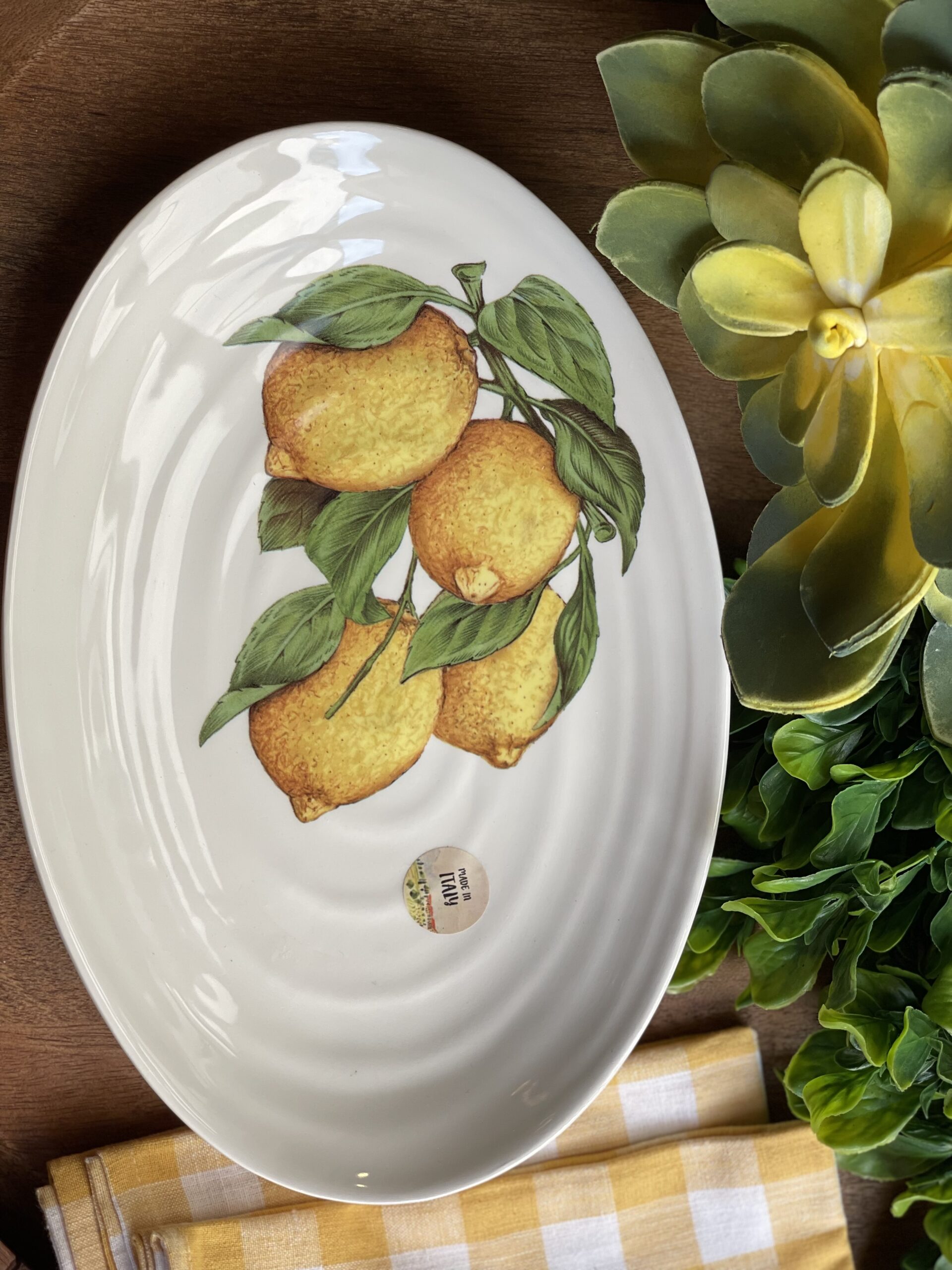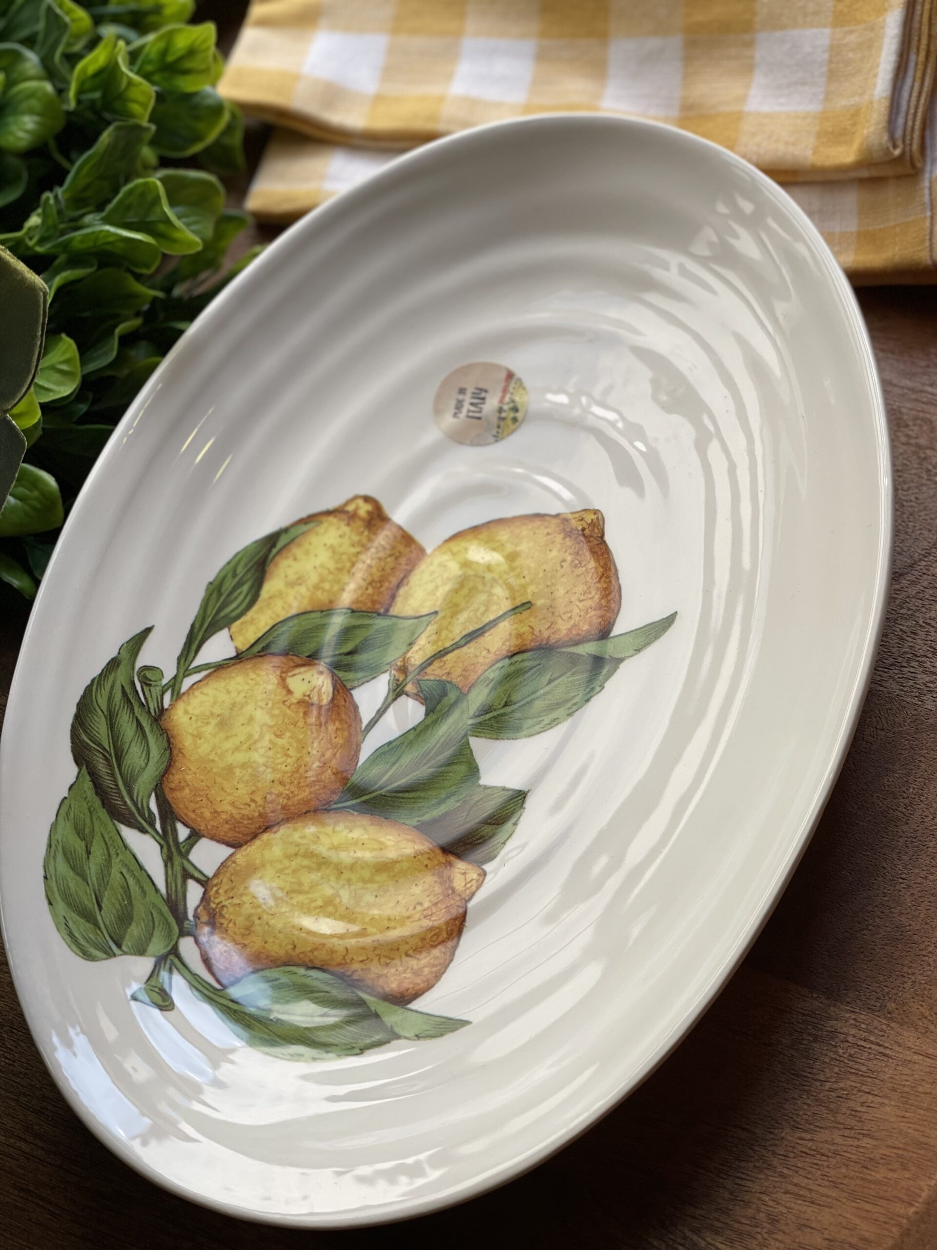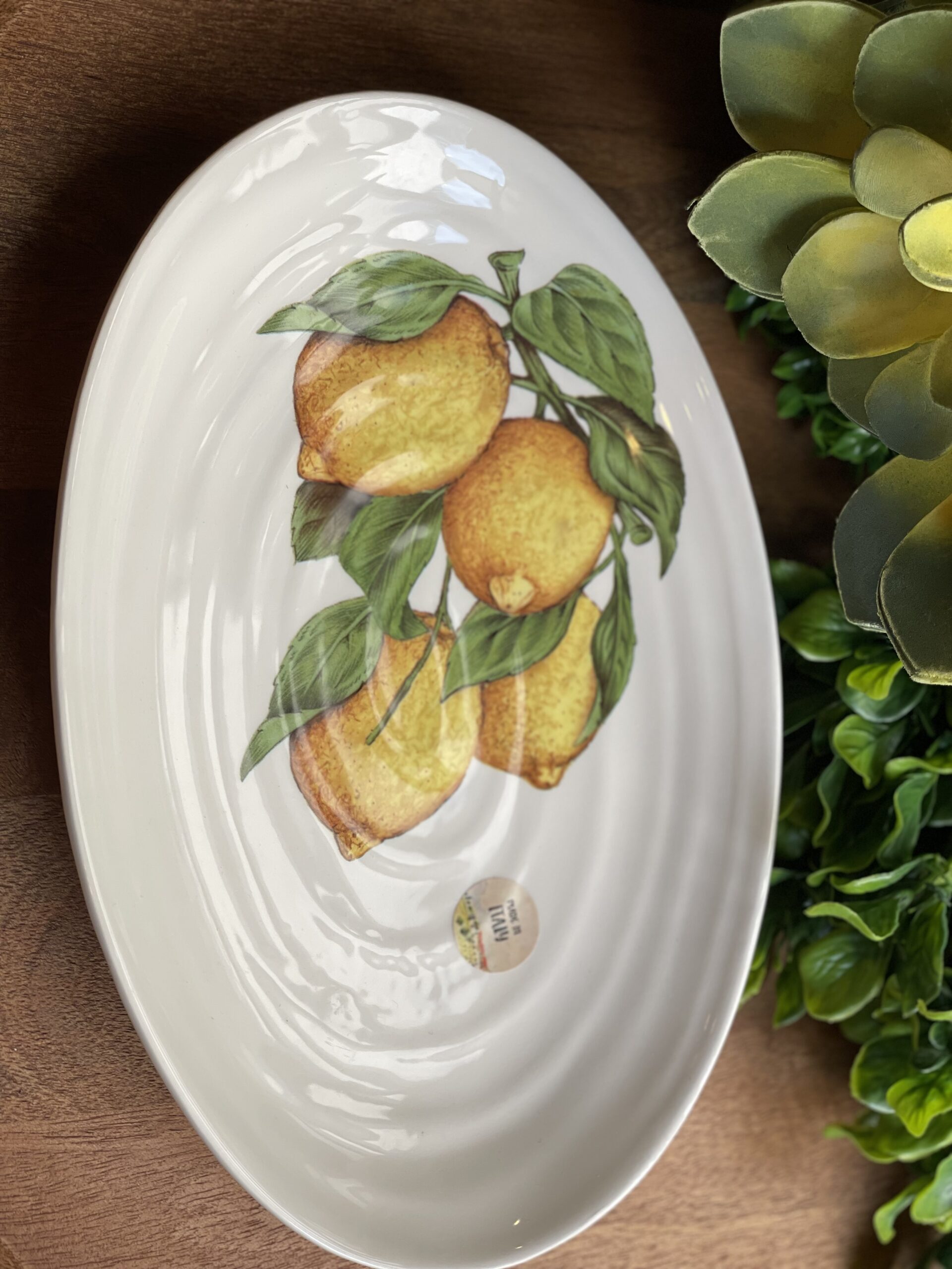 Platón ovalado con figura de limones en cerámica.