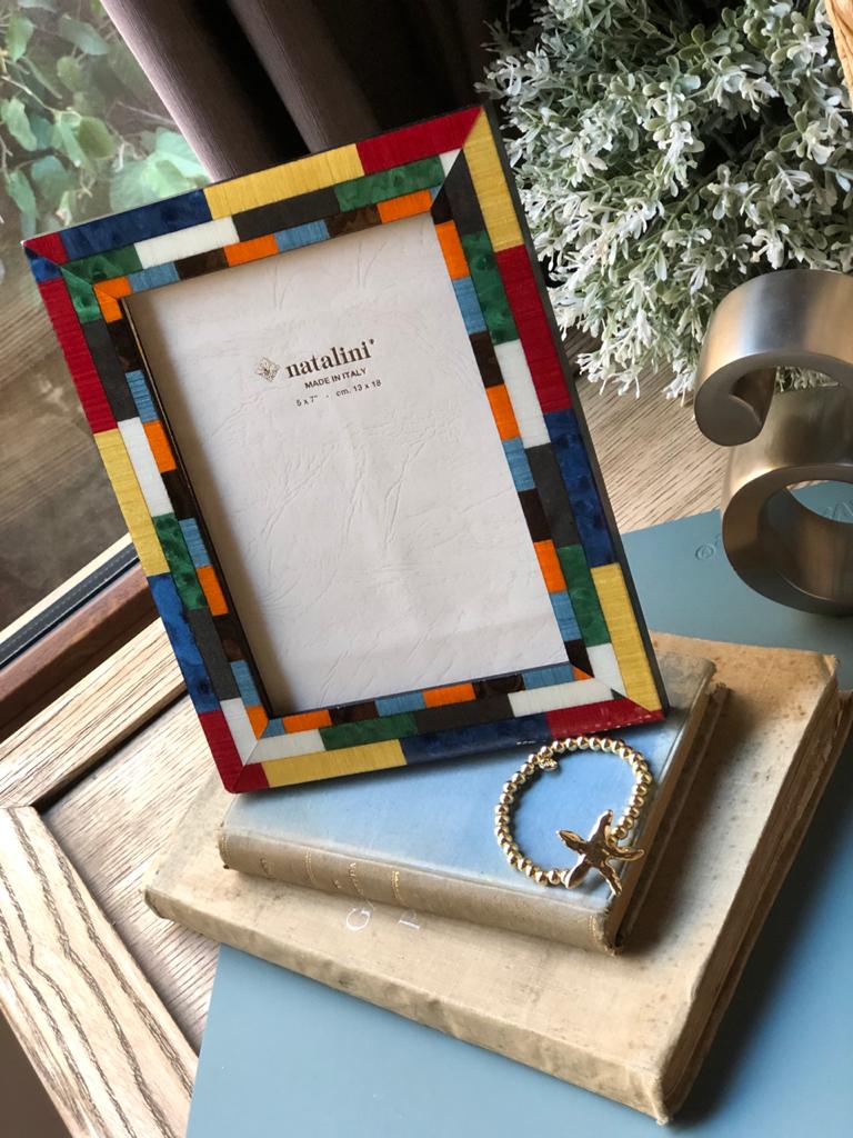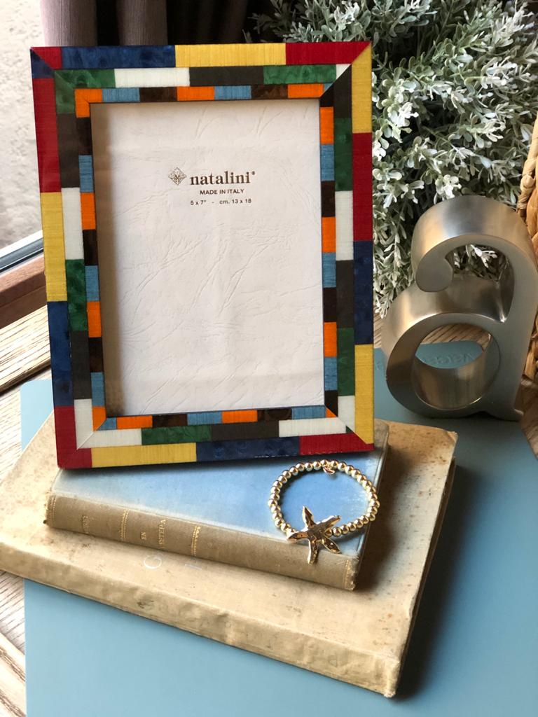 Portaretratos con filo de madera multicolor. Puede ser usado de forma vertical u horizontal, para que luzcan mejor tus fotos.