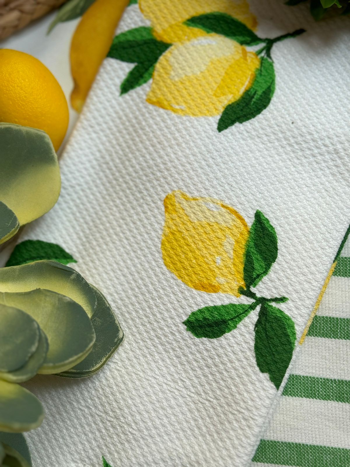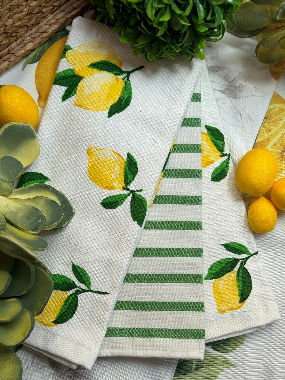 Set de 3 toallas de cocina con diseño de limones y rayas