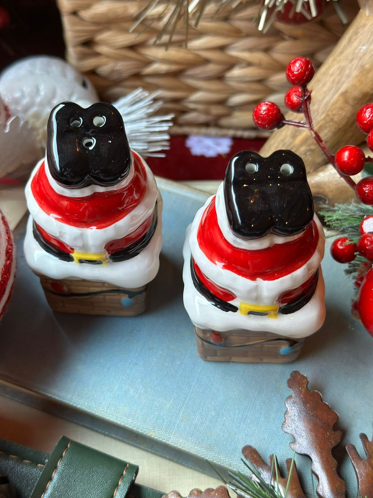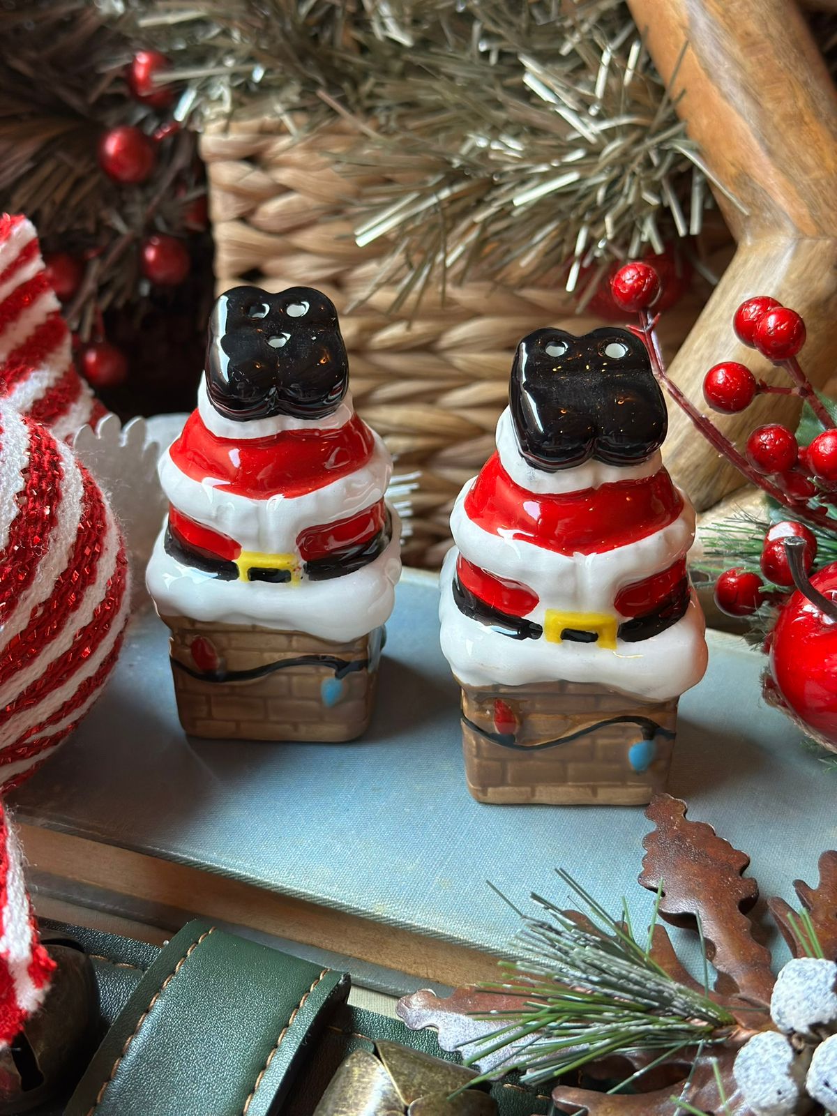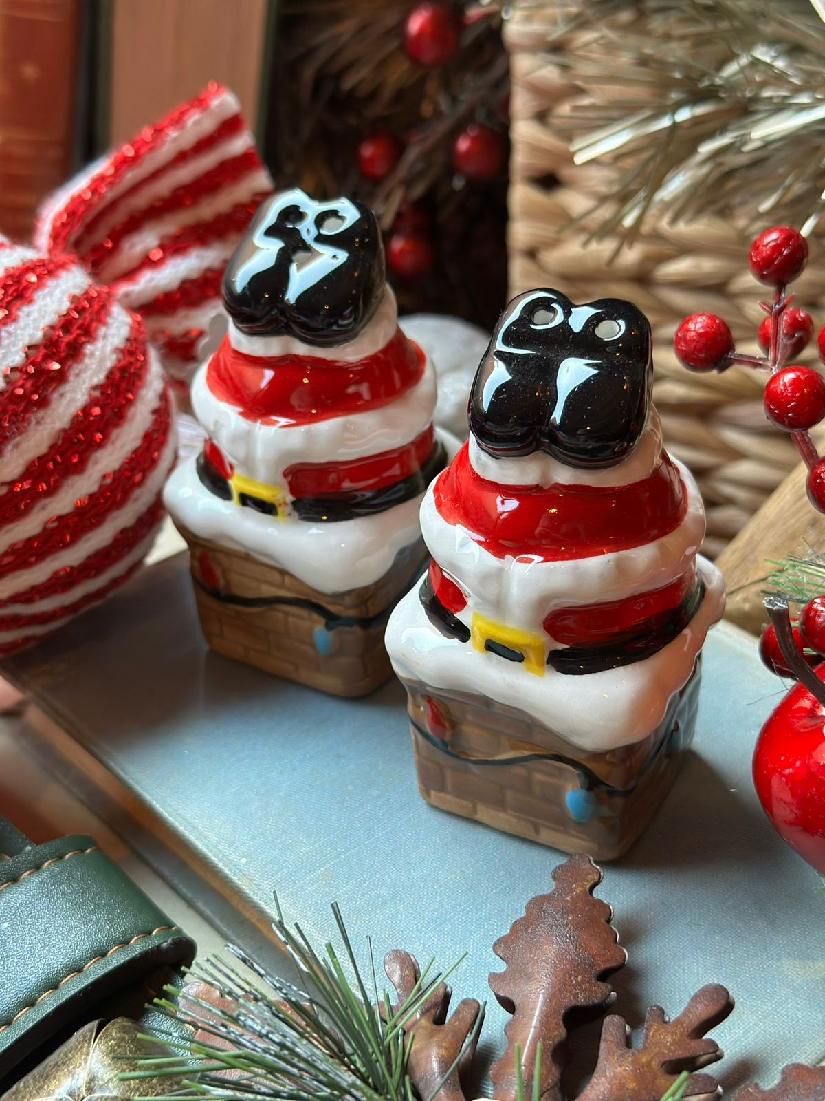 Set de salero y pimentero chimenea y patas de Santa.