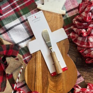 Botanero de madera con forma de árbol de navidad y laca blanca.