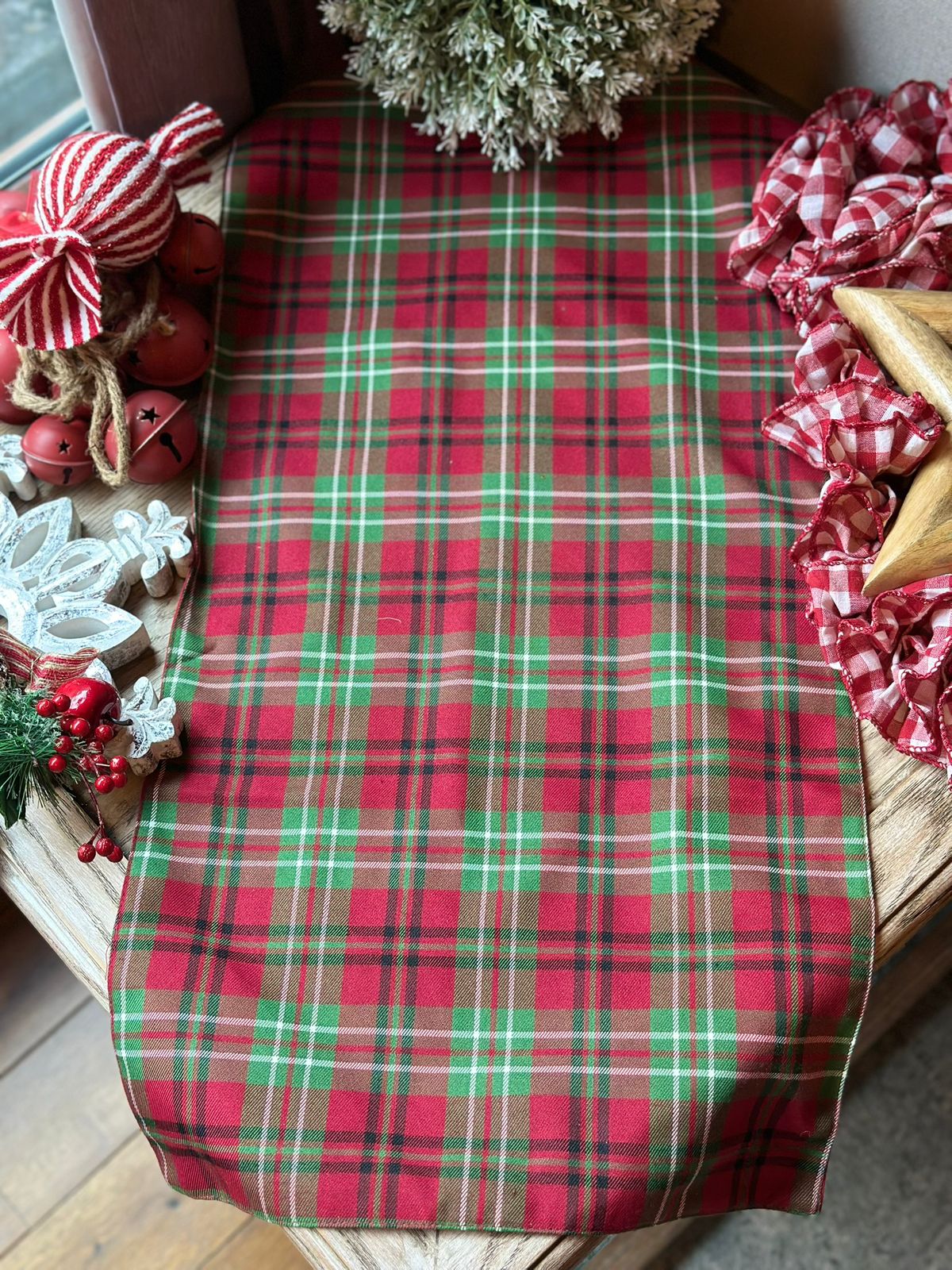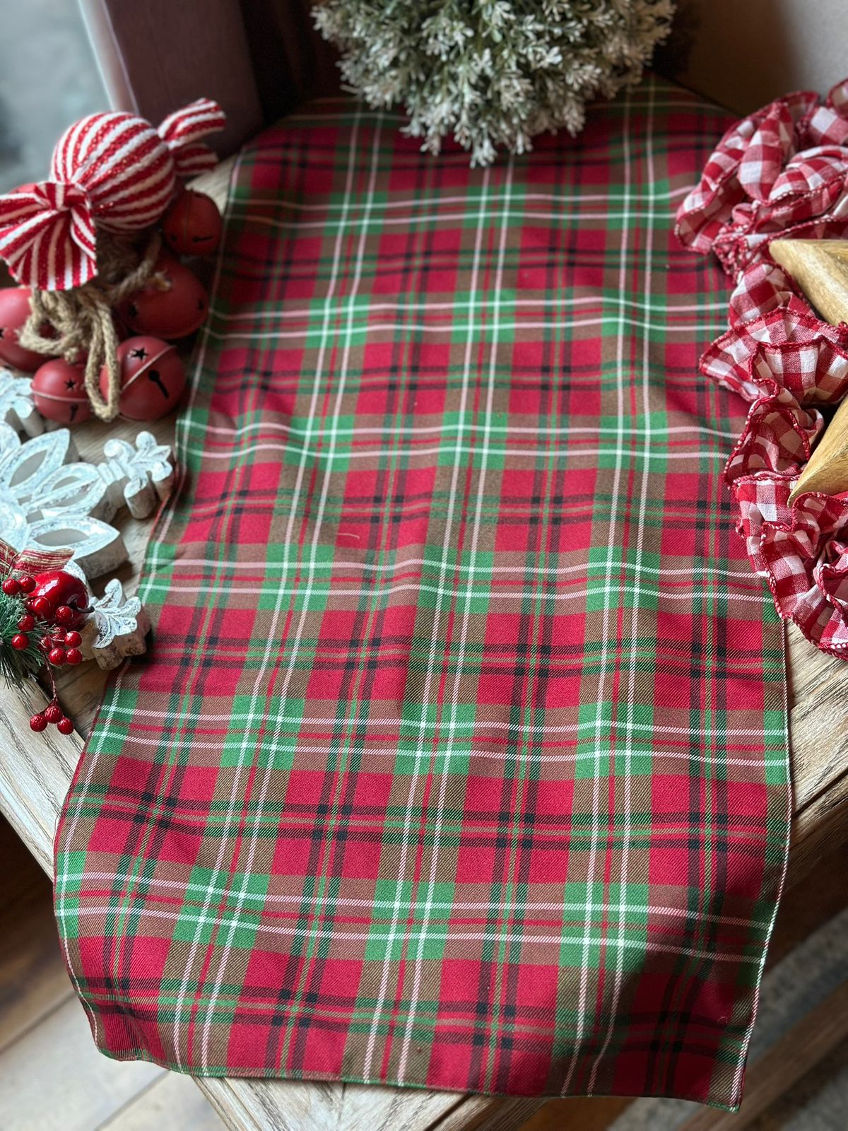 Camino cuadros rojo.
