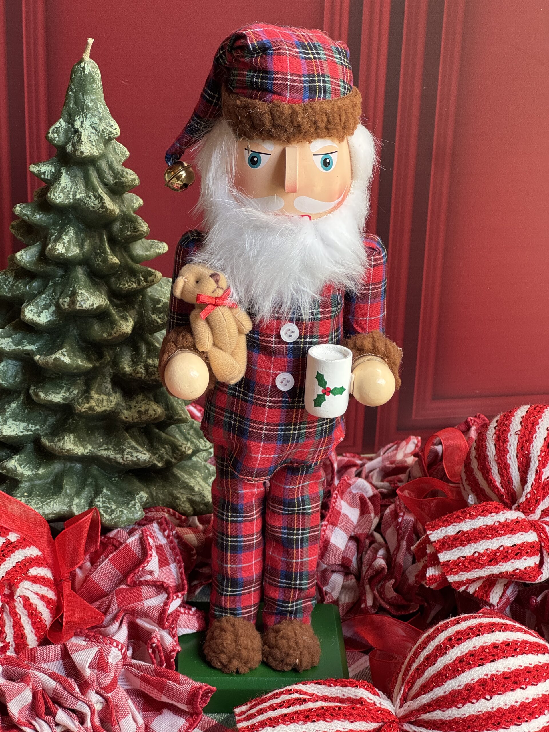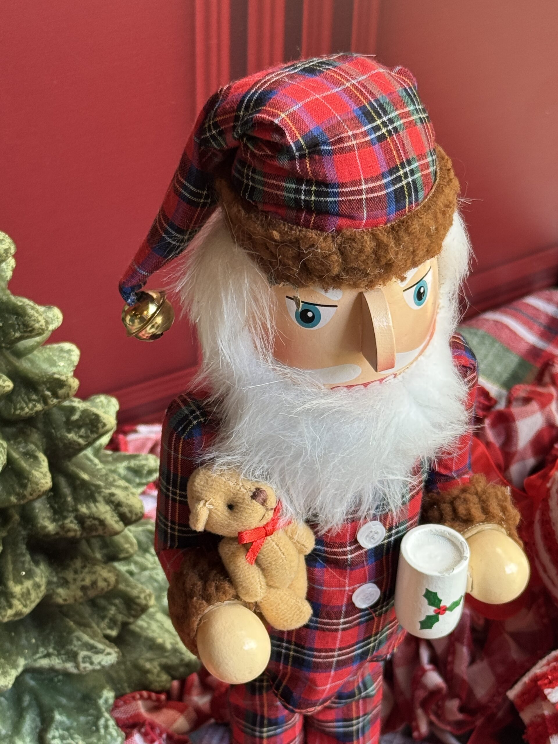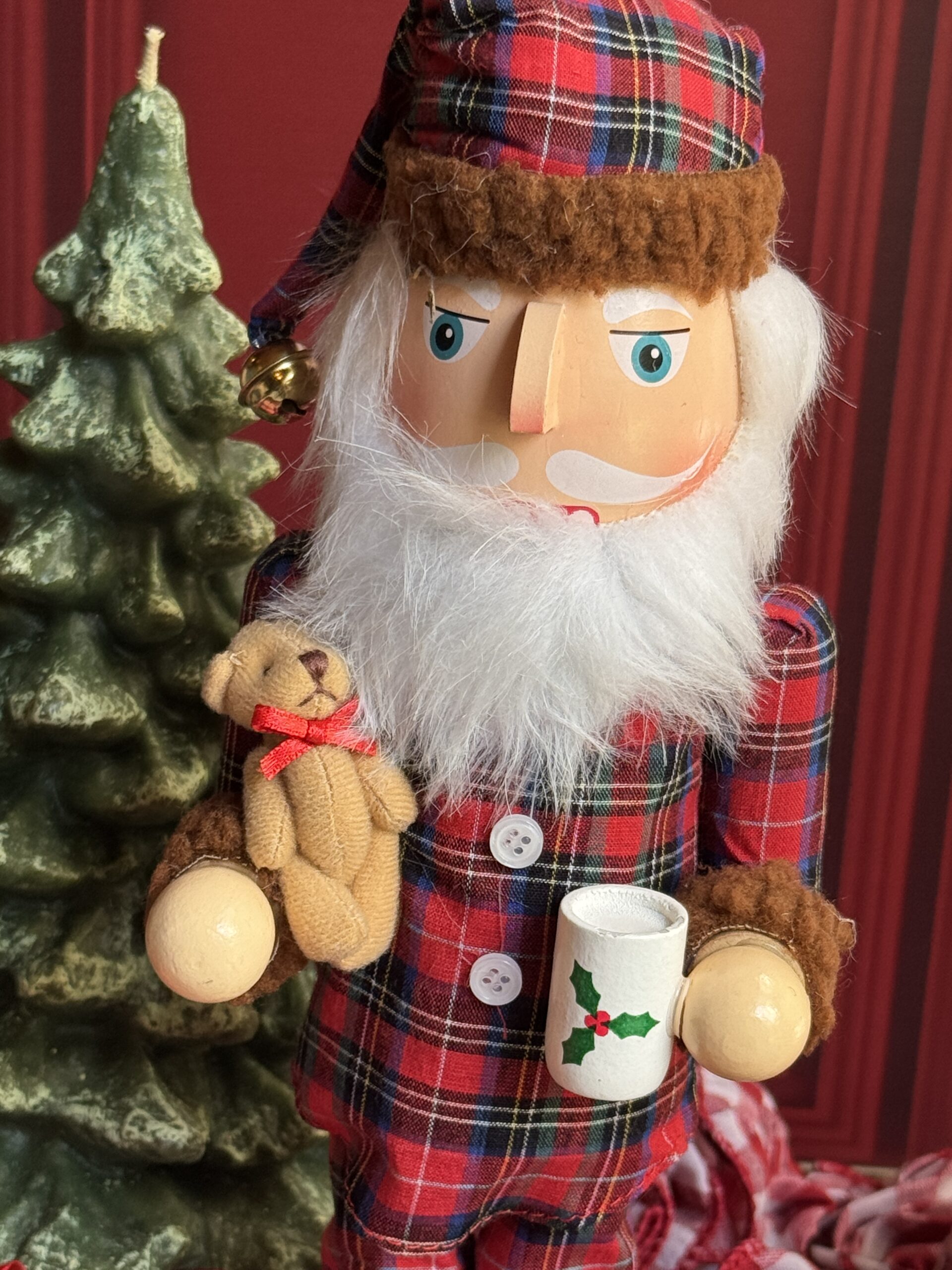 Cascanueces con pijama de cuadros de pantalón y camisa.