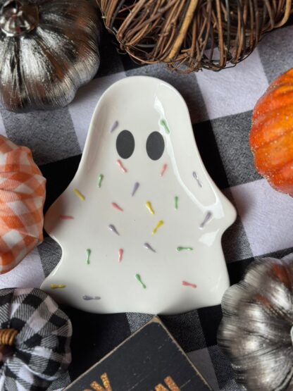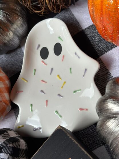 Descansacucharas con diseño de fantasma con sprinkles.