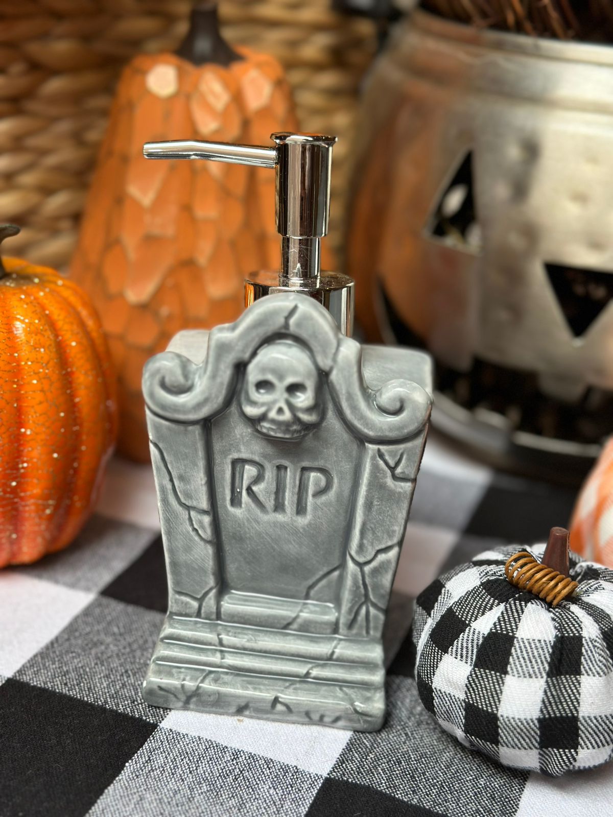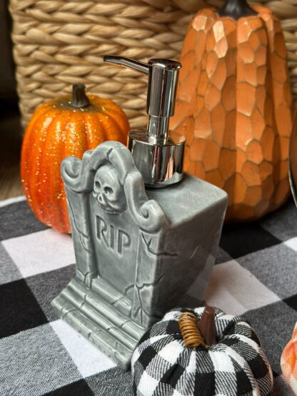 Despachador de jabón con forma de tumba.
