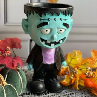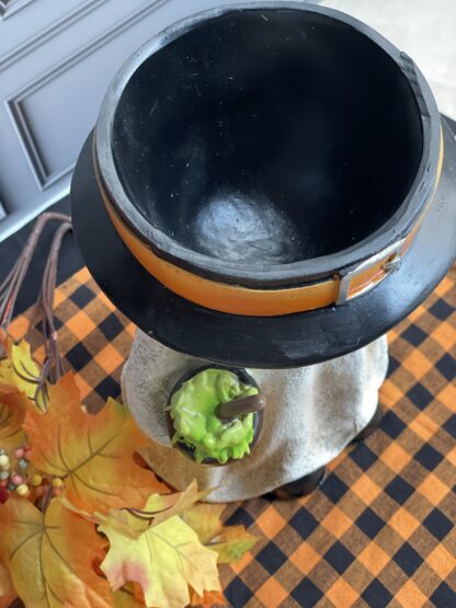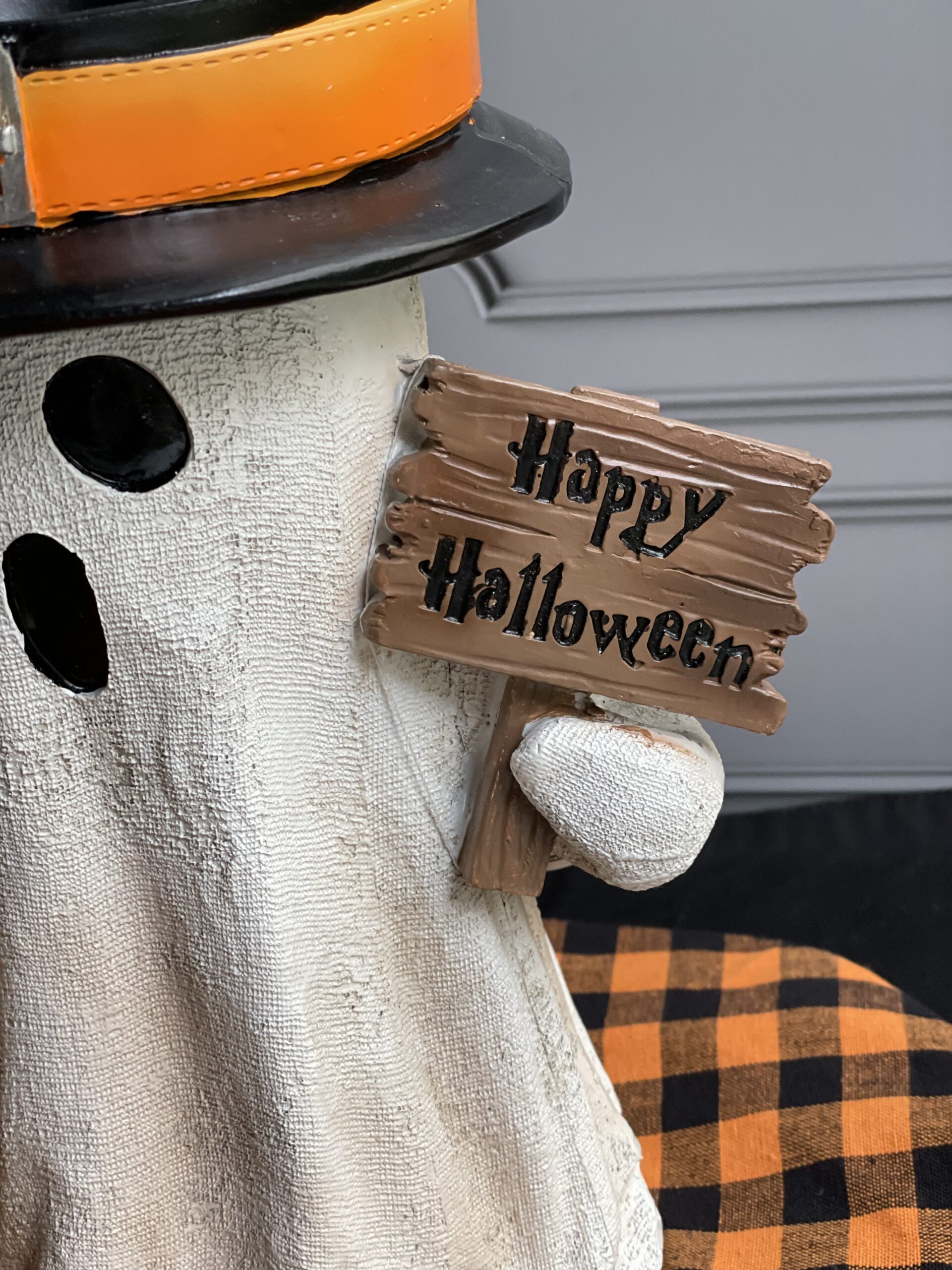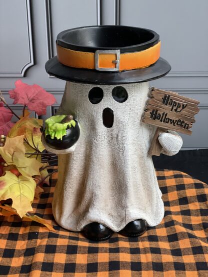 Figura de fantasma con espacio en la parte superior para colocar dulces.