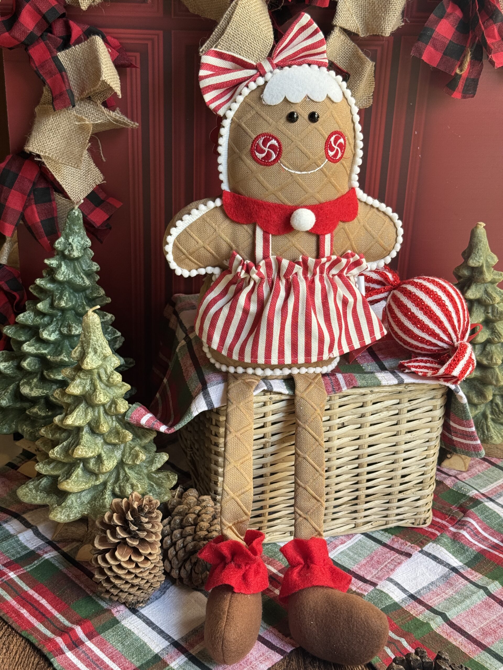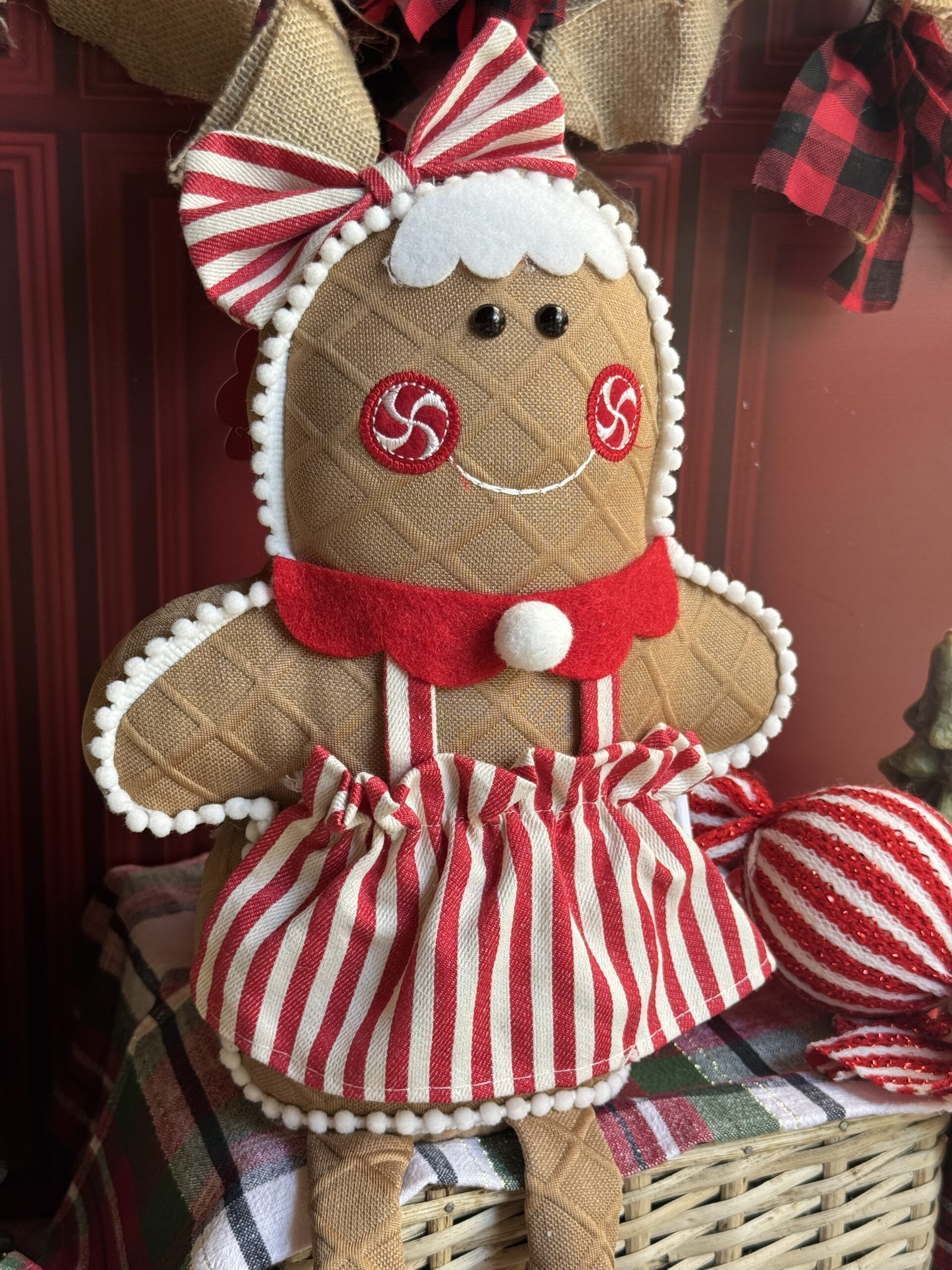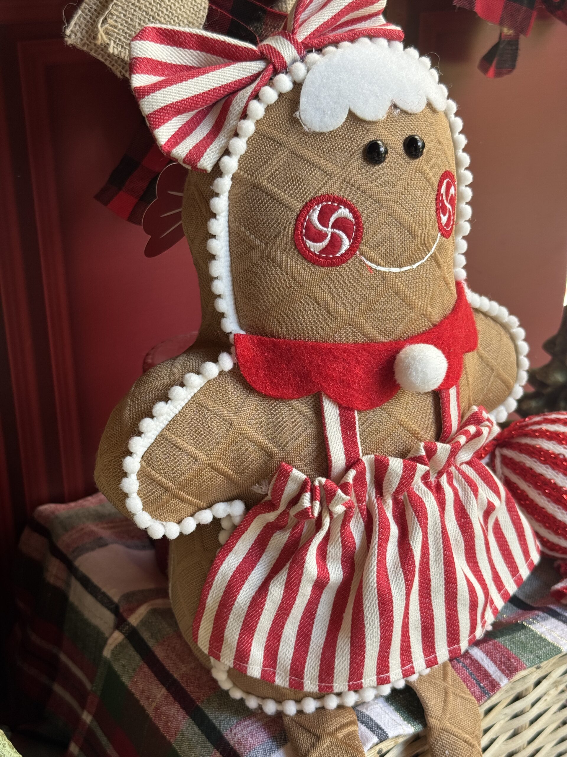 Muñeca wafleado de jengibre niña con moño con patas largas.