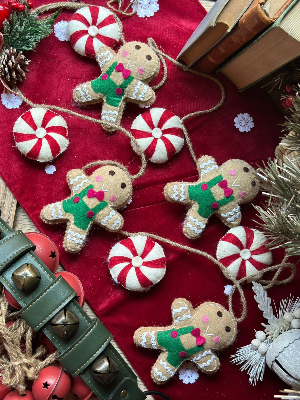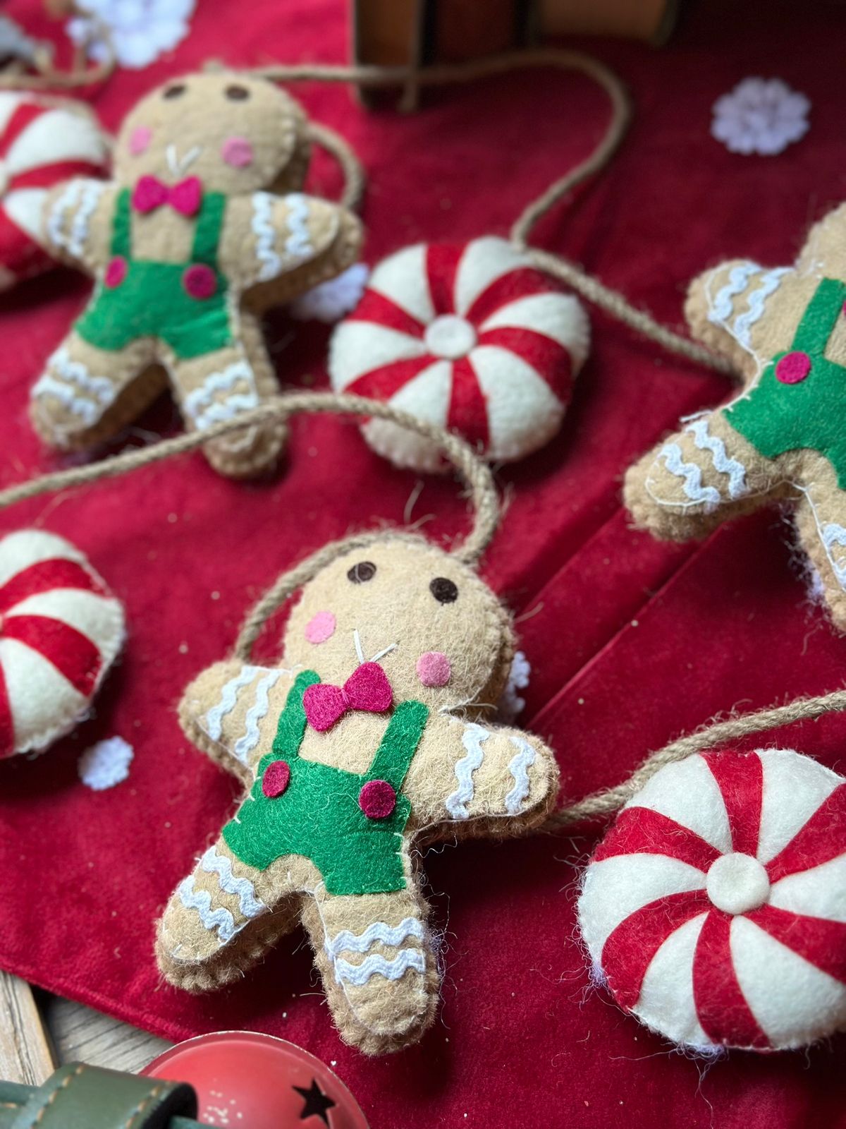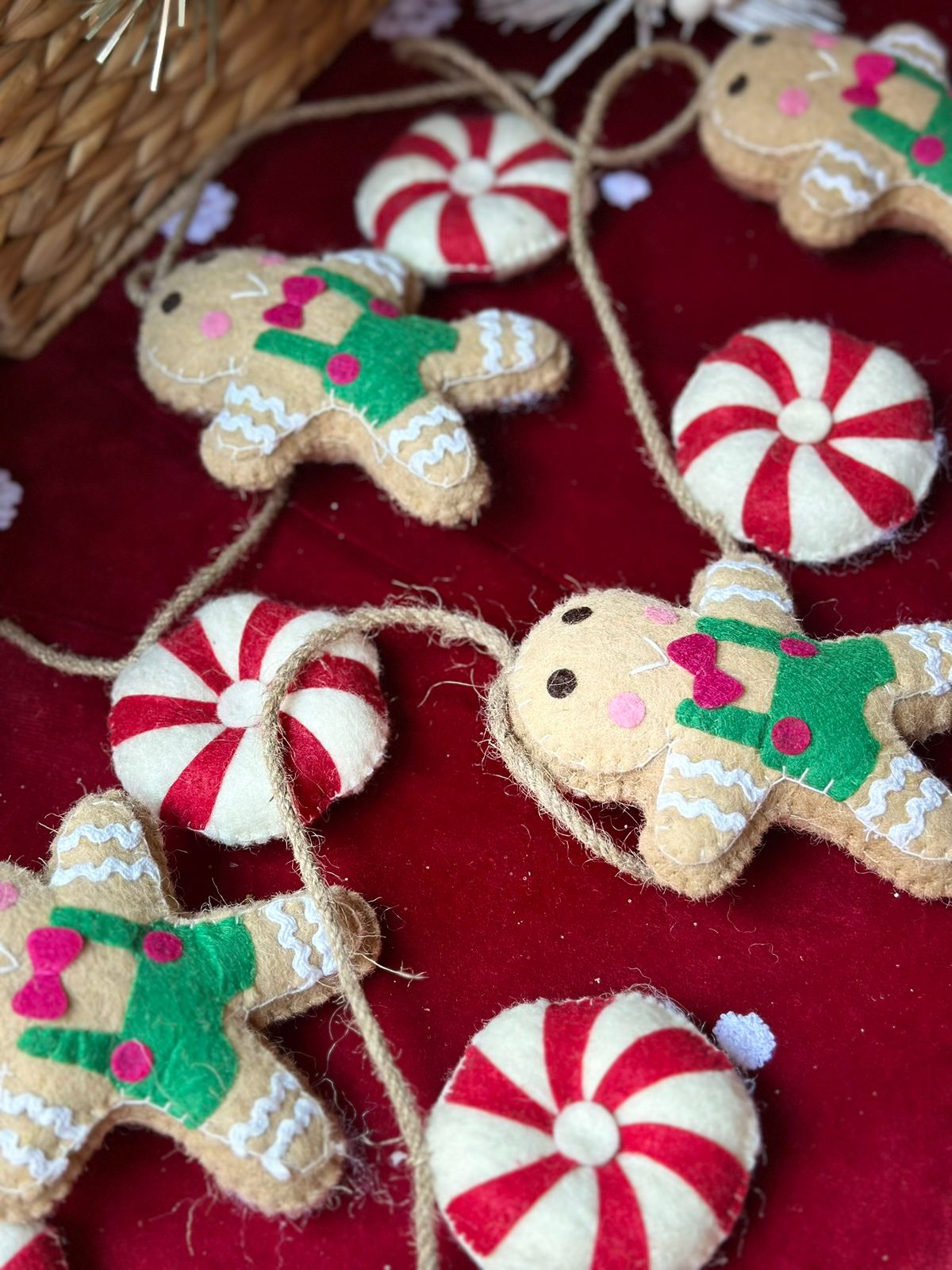 Guirnalda de fieltro de lana con diseño de galleta candy.