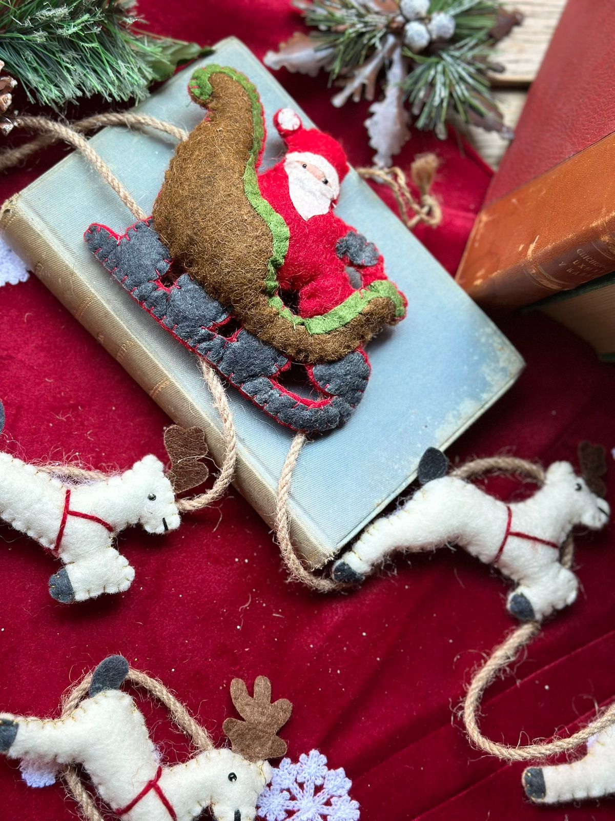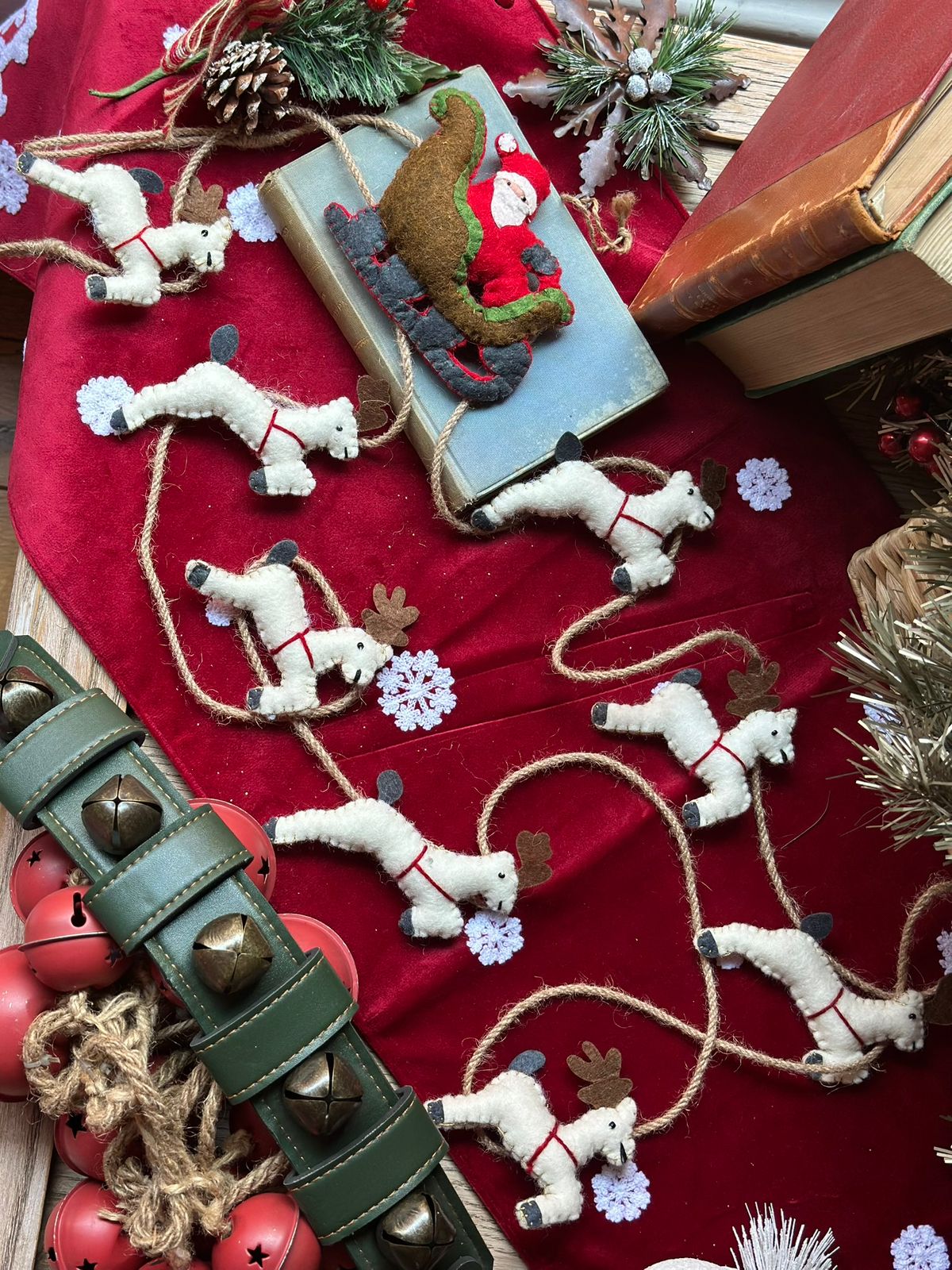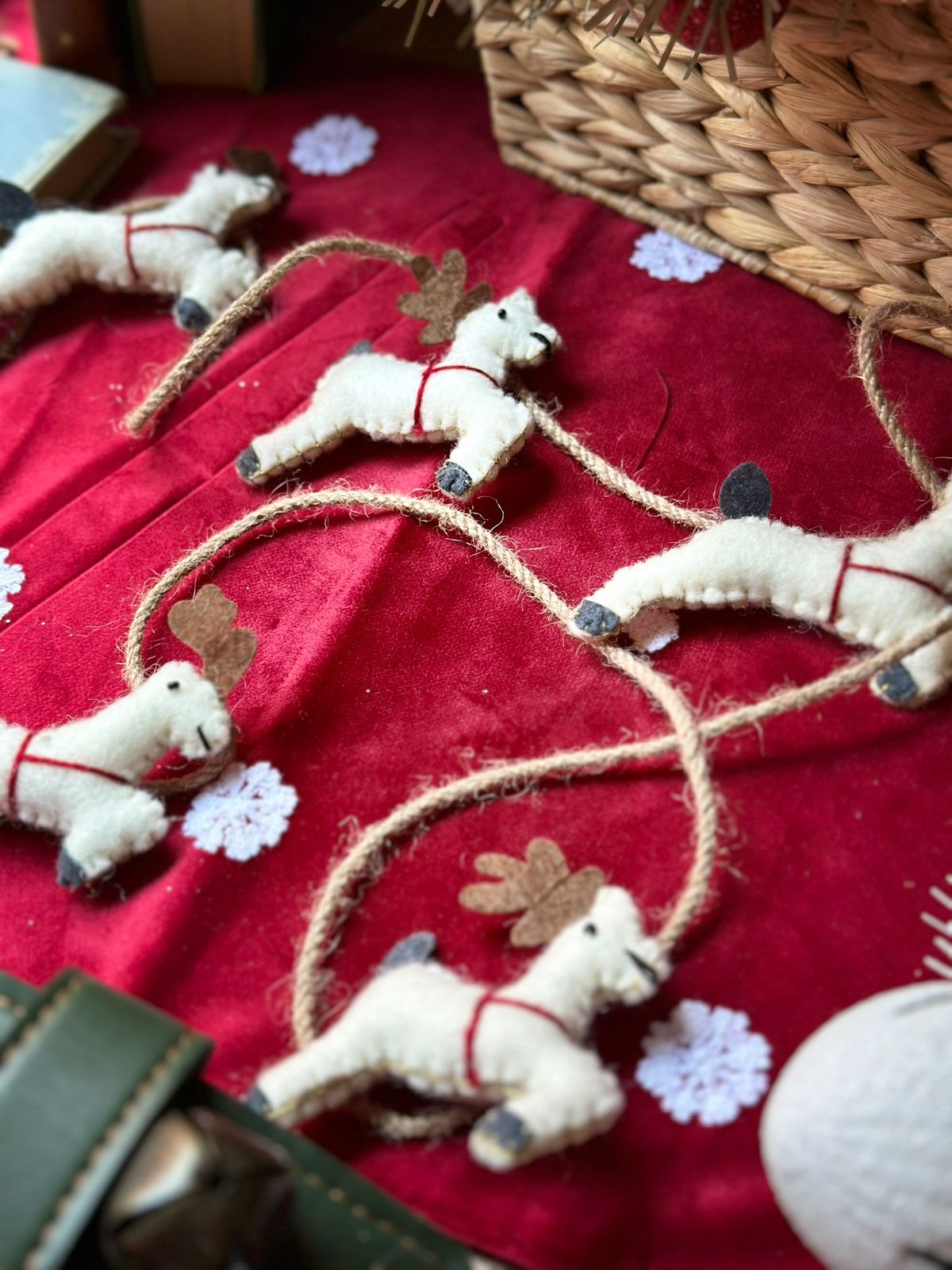 Guirnalda de fieltro de lana con diseño de renos.