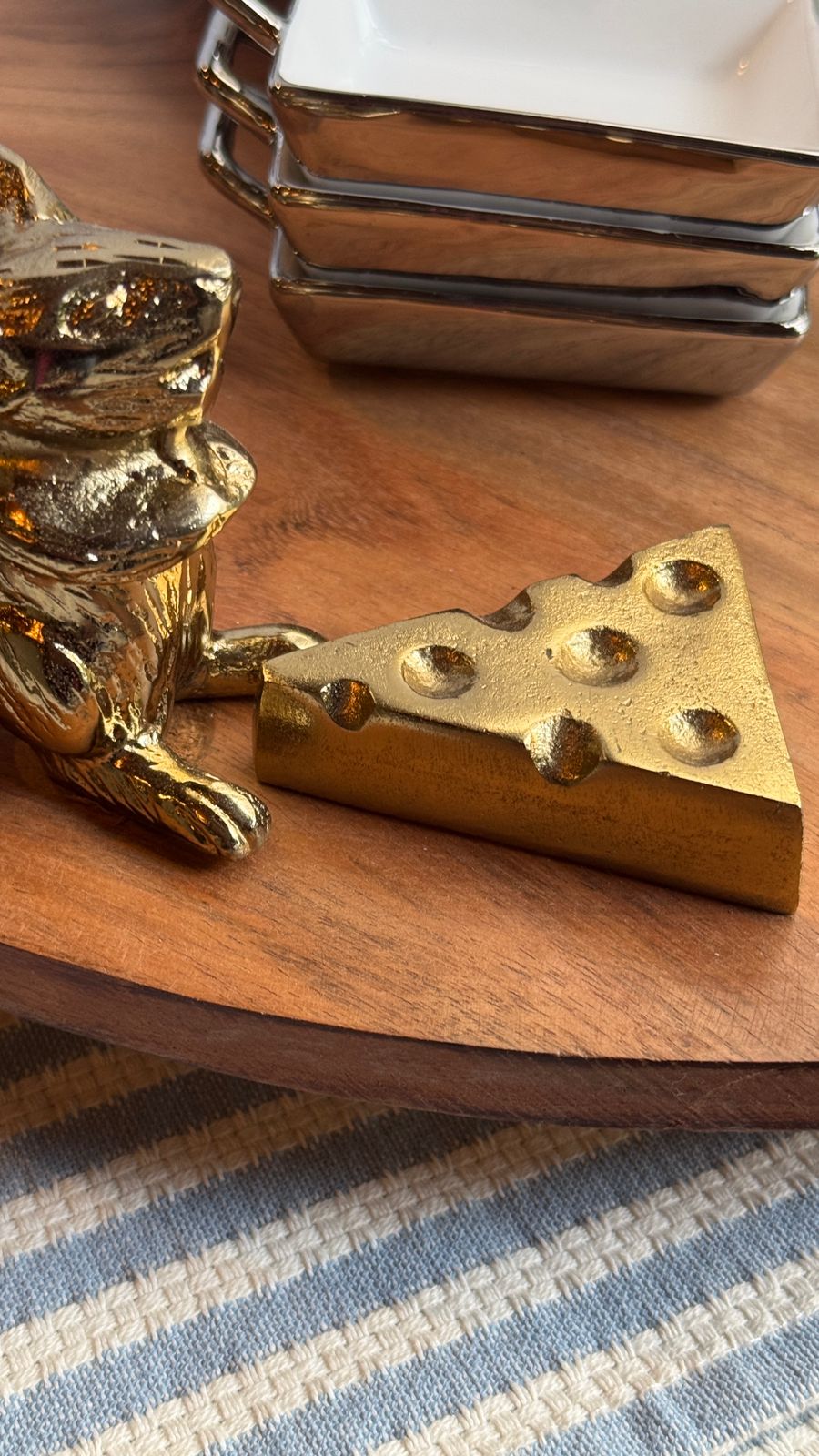 Lazzy susan  de madera con ratón con queso. Bse giratoria