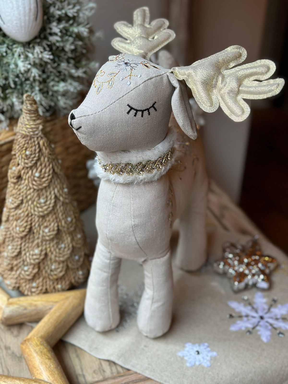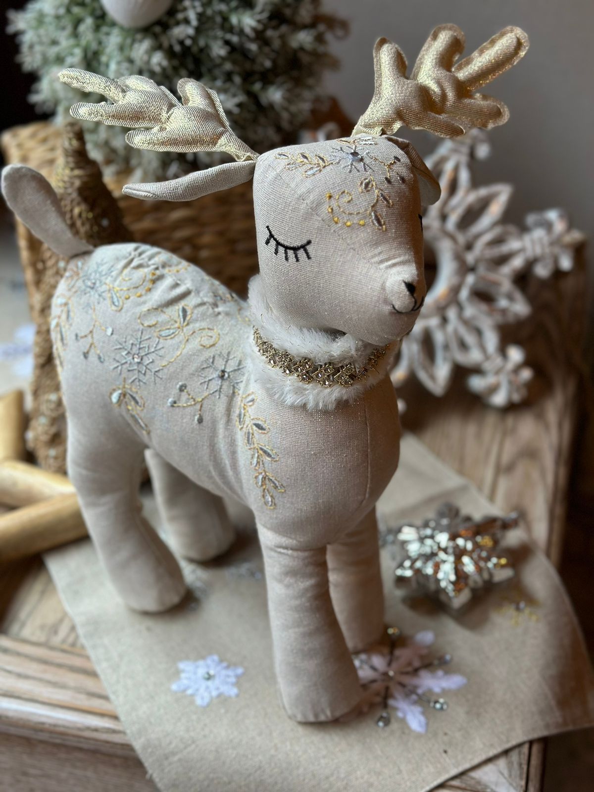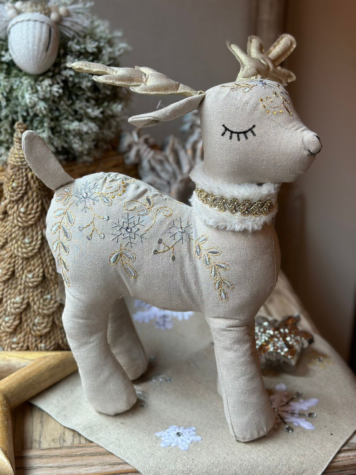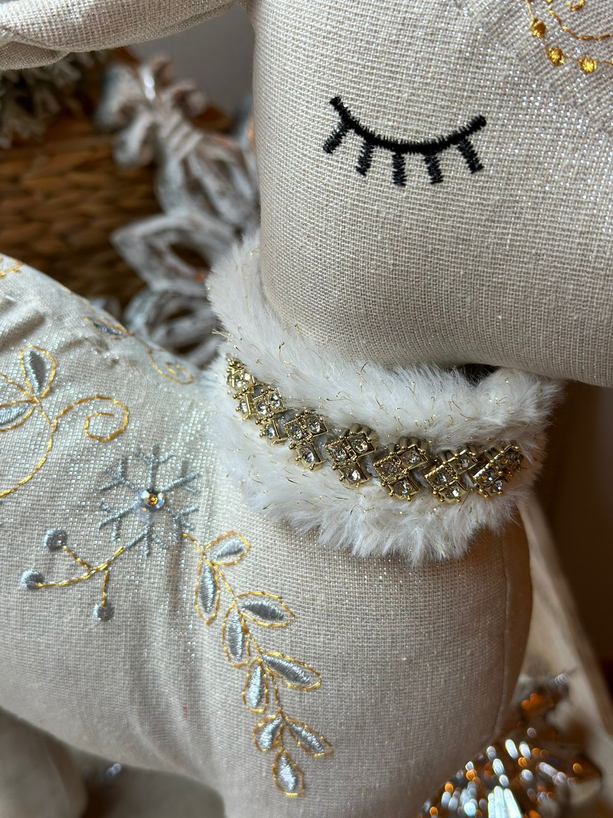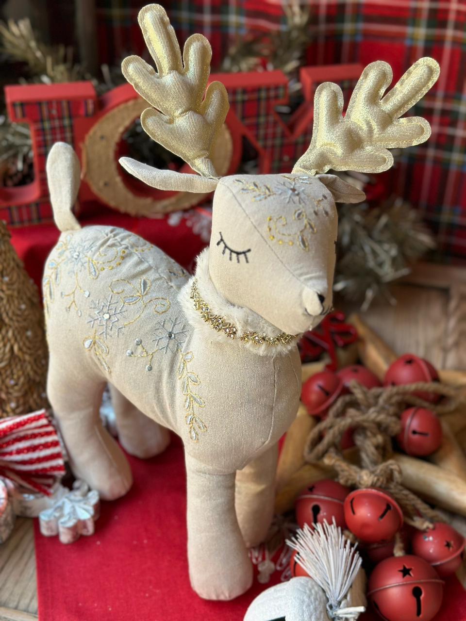 Muñeco venado bordado en cuerpo y elegante collar con pedrería.