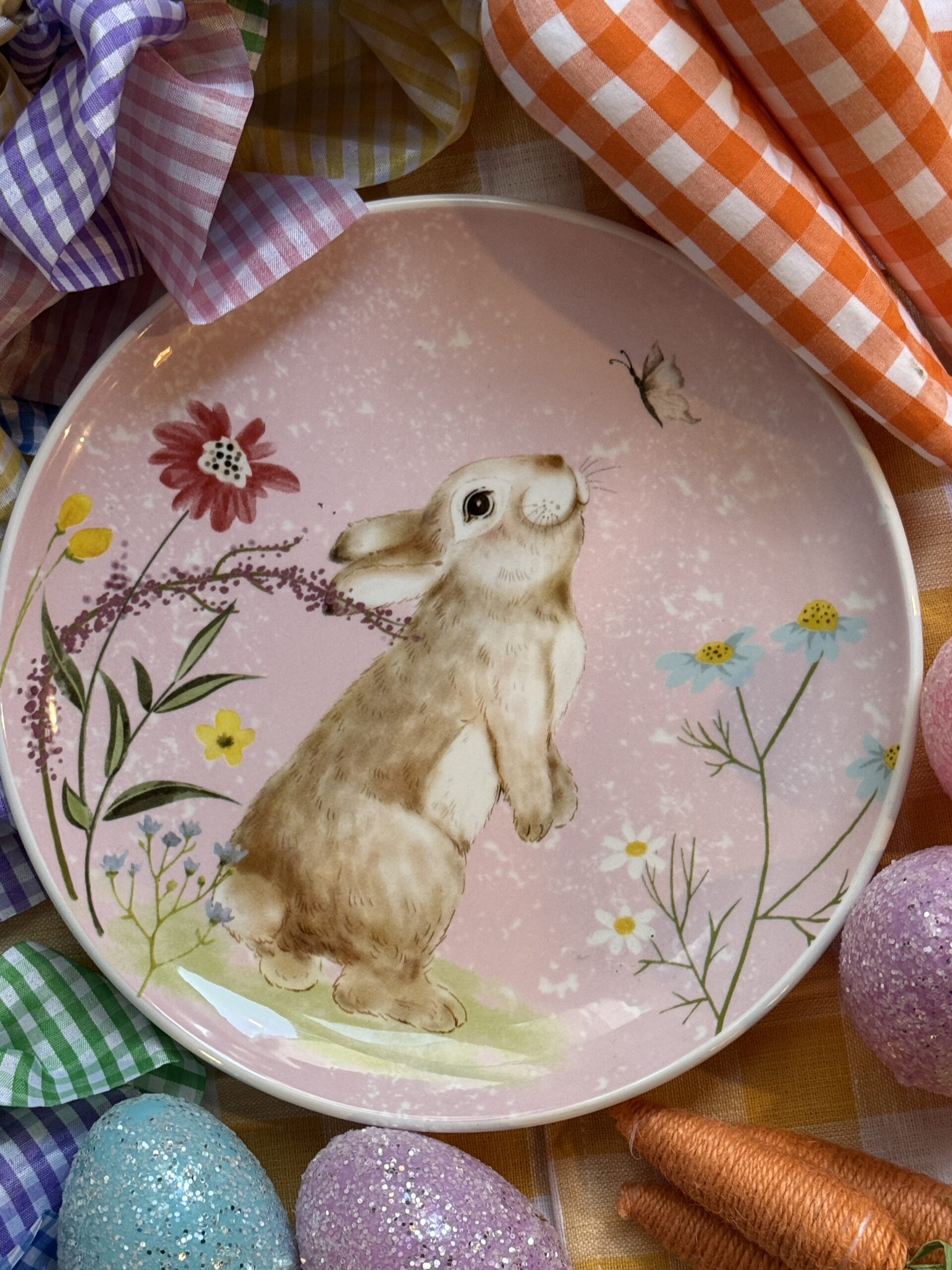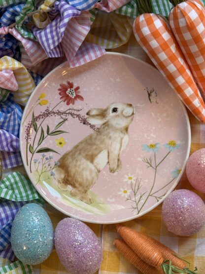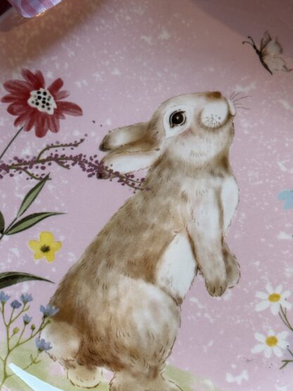 Plato redondo con print coneja con flores.