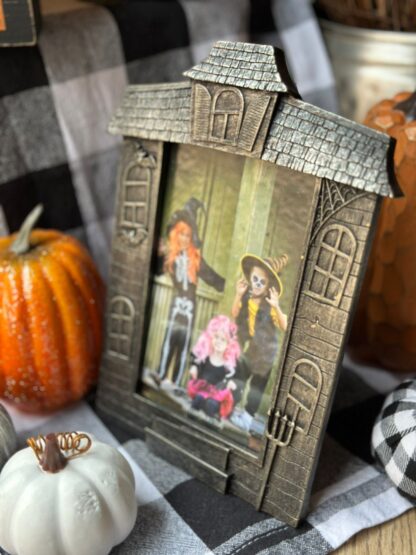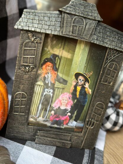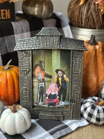 Original portaretratos con forma de mansión embrujada.