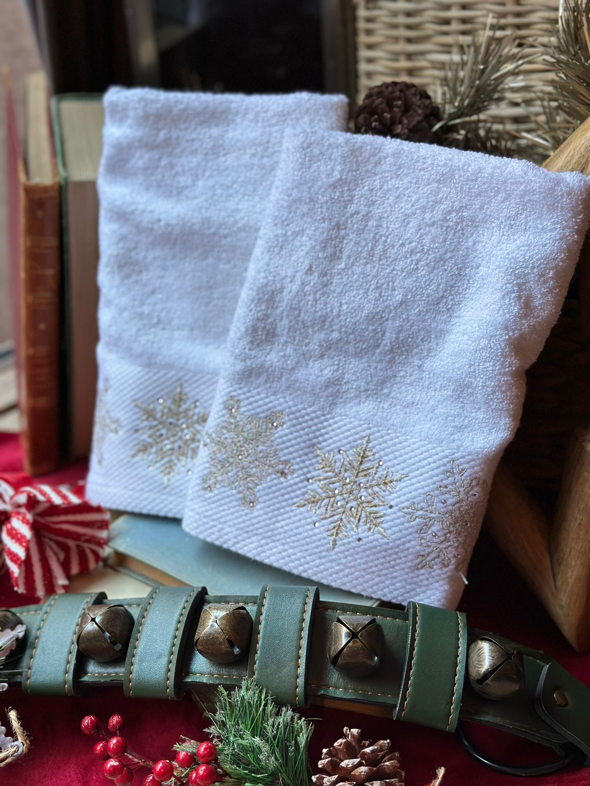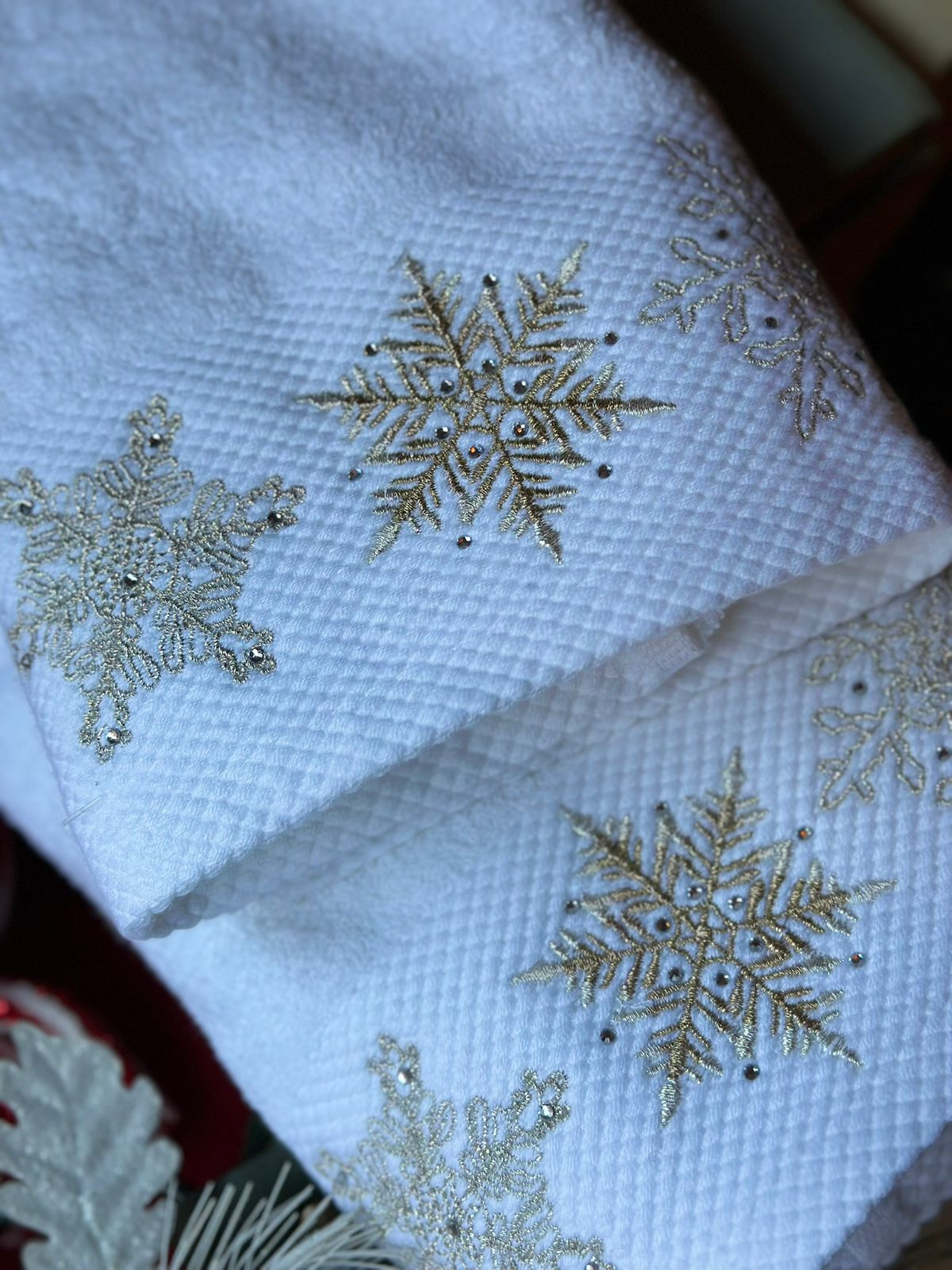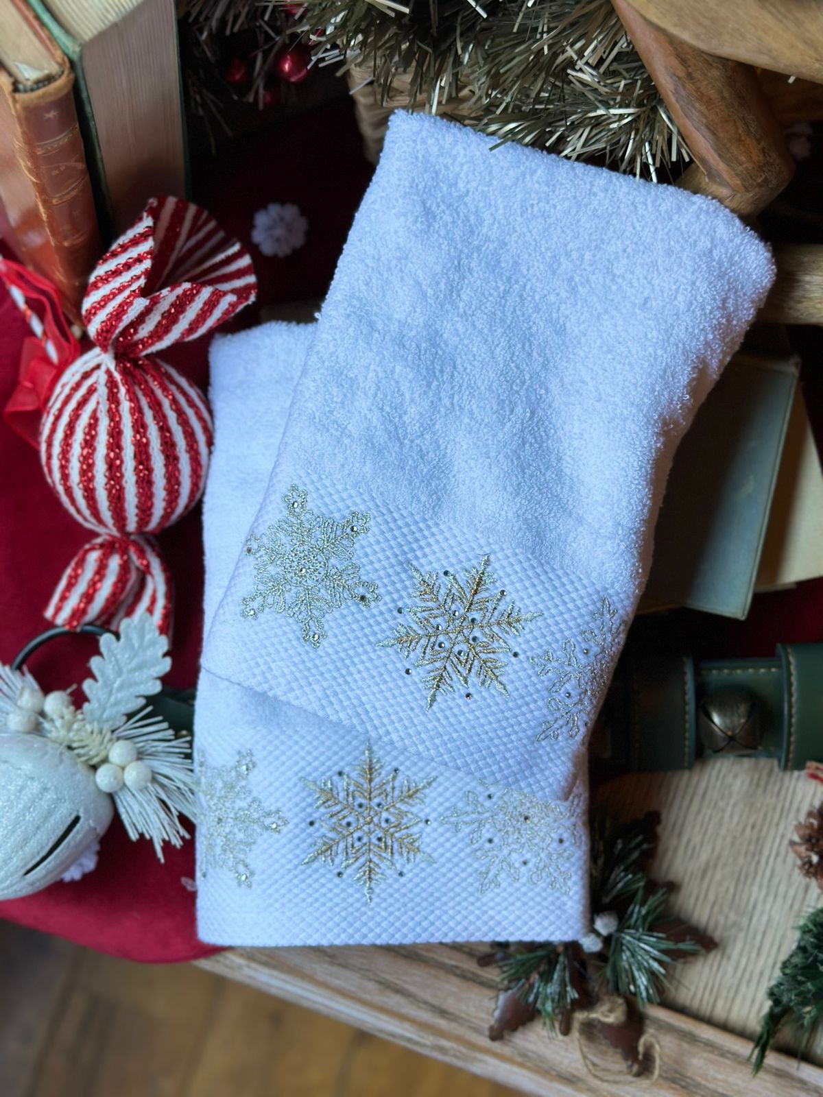 Set 2 toallas de manos copos plata.