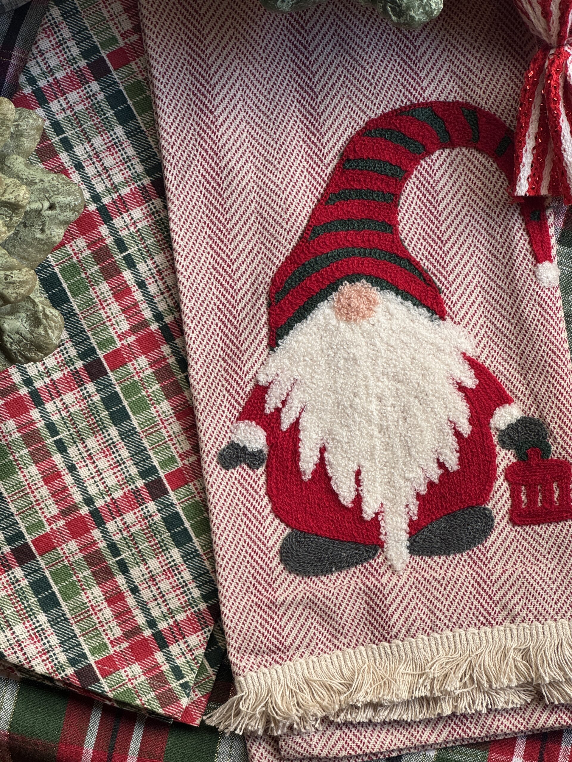 Set de 2 toallas de cocina con gnomo bordado en relieve.