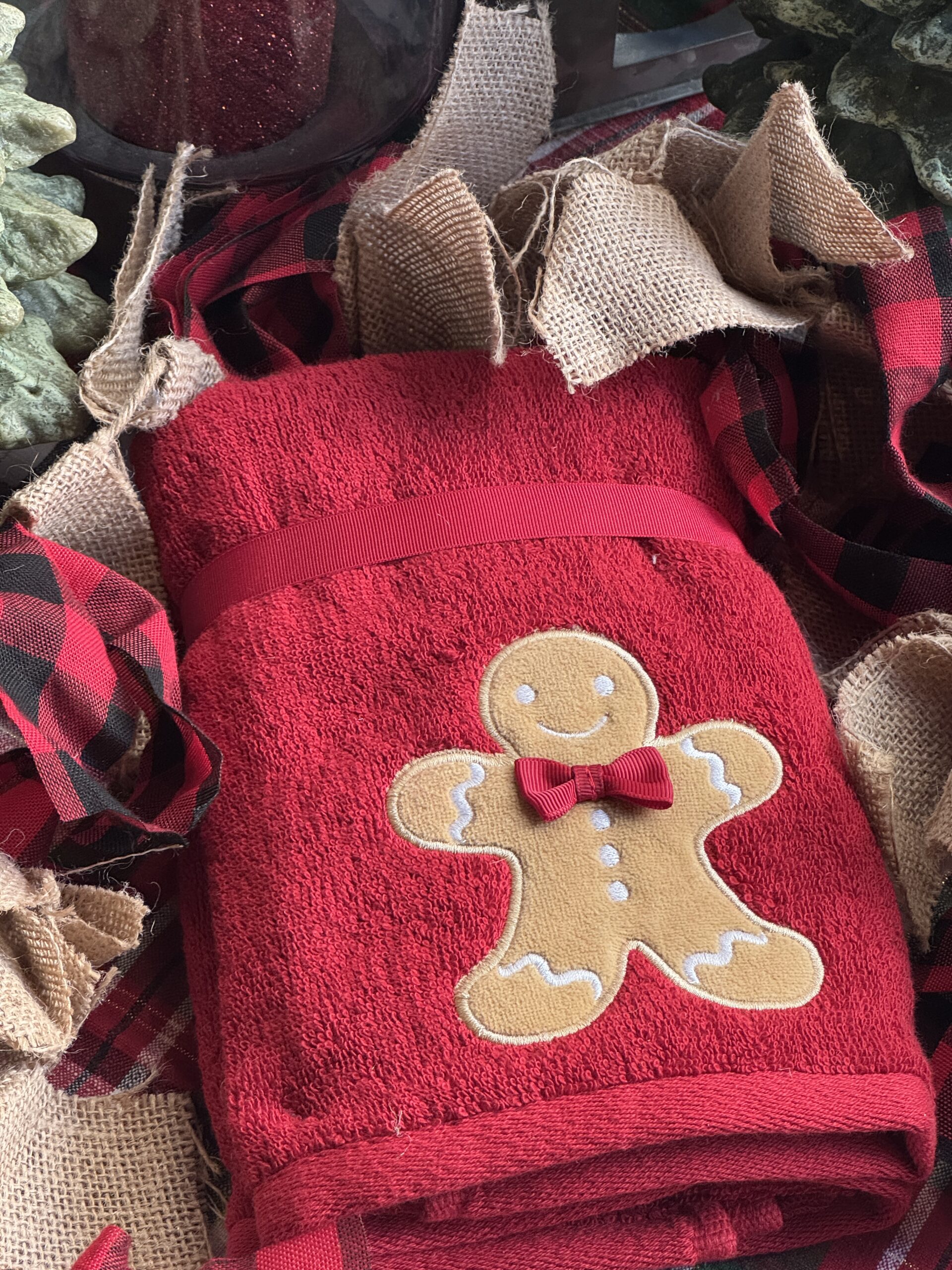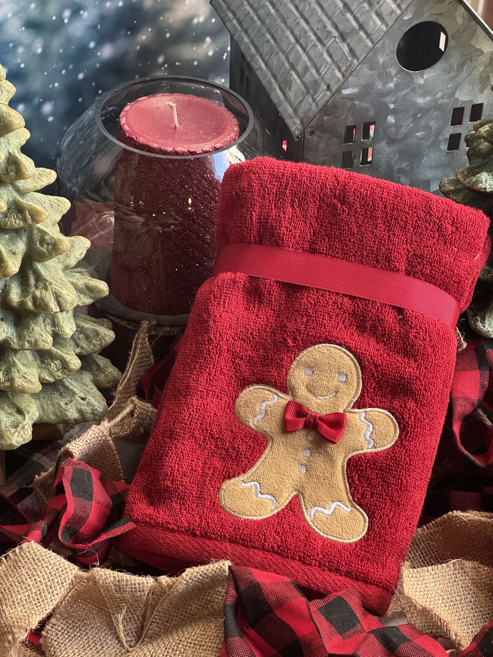 Set de 2 toallas de manos para baño con figura de galleta de jengibre en relieve.