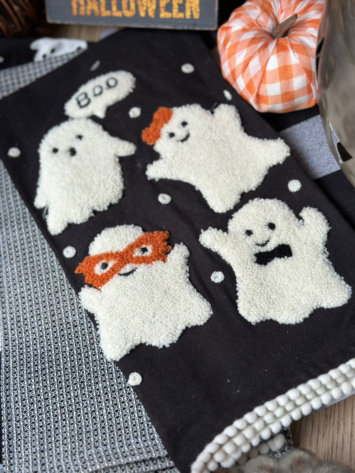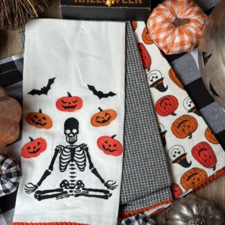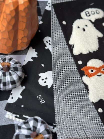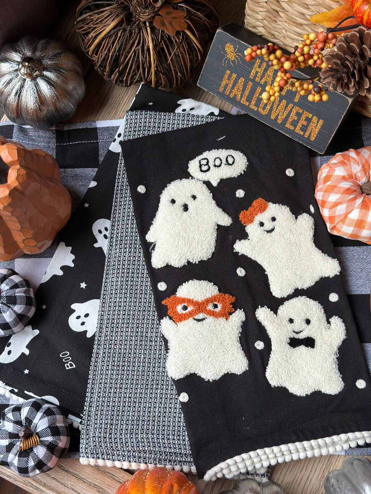 Set de 3 toallas cocina fantasmas bordado con aplicaciones.