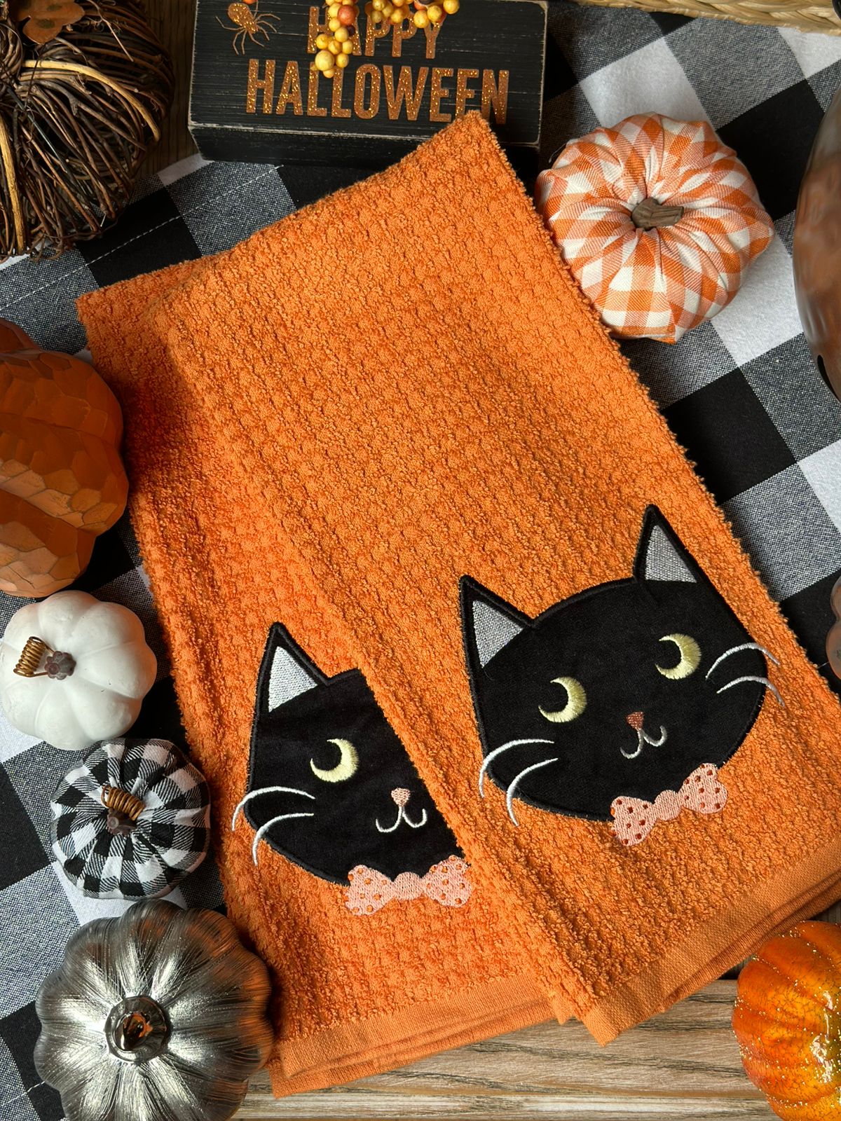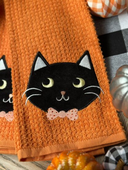 Set de 3 toallas cocina gato bordado con aplicaciones.