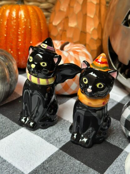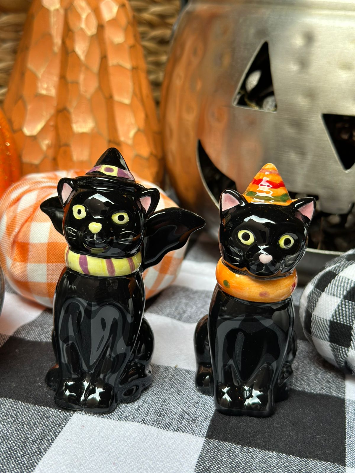 Set de salero y pimentero con forma con forma de gato murciélago y gato natural.