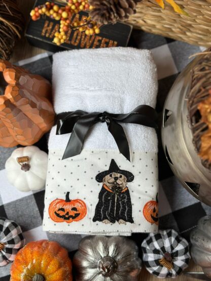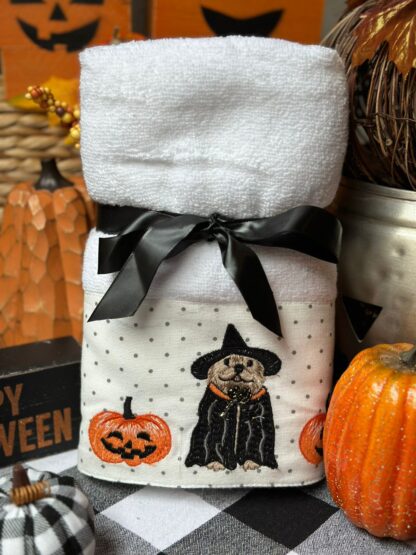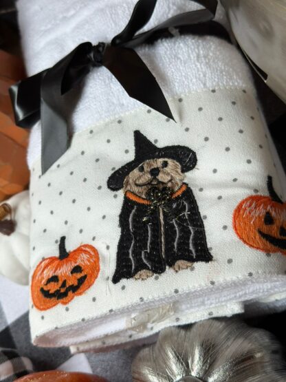 Juego de 2 piezas bordado con diseño de perros con puntos en cenefa.