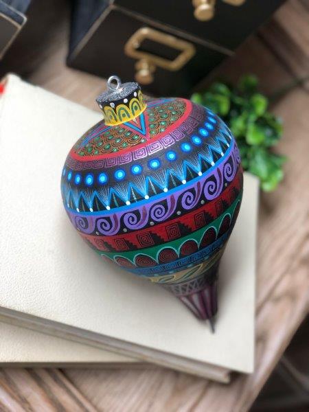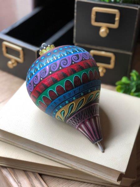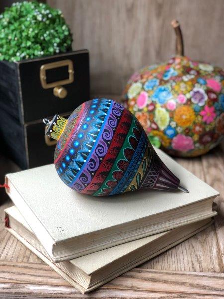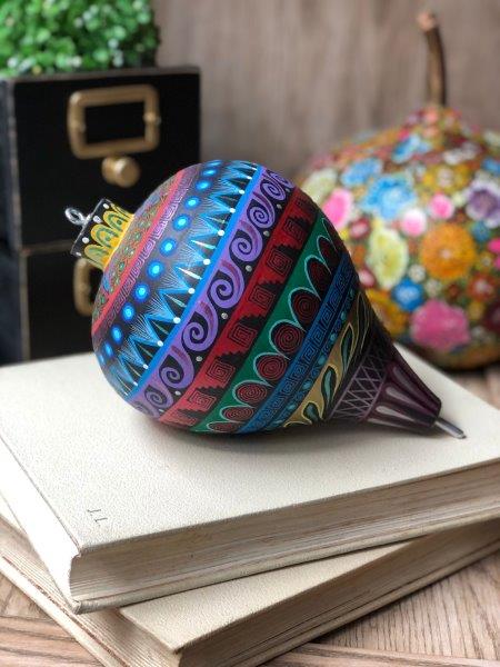 Original trompo en tonos azules, pintado a mano en técnica de alebrije